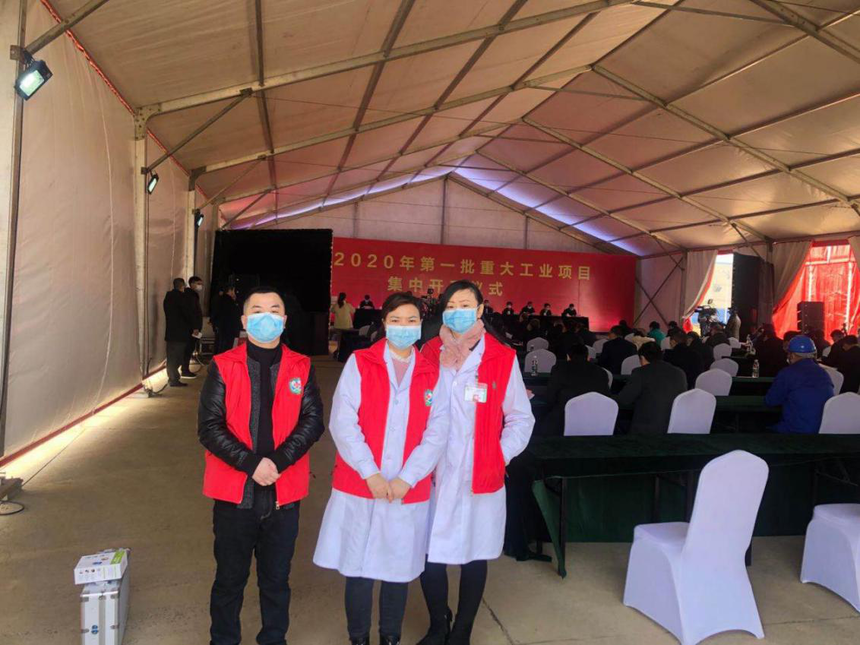 2020年3月5日,经开区第一批重大工业项目集中开工仪式在德福科技有限公司进行。疫情期间为了确保本次大会顺利安全有序进行,区管委会高度重视此次仪式防控和医疗保障工作,特委派九江市第一人民医院开发区分院为此次开工仪式的医疗保障工作,我院的两名医护人员在医务科主任的带领下早早赶赴会场。