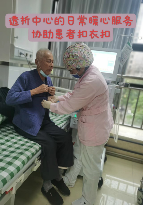 “对于急慢性肾功能衰竭患者来说,血液透析是他们维持生命的最重要的治疗方式,中断一次有可能危及生命”,透析中心孔主任说,许多患者都是独自一人前来透析,为更好的服务患者,透析中心的医护人员们经常接送透析患者上下楼,在透析过程中主动询问其生活需求,帮助行动不便的患者标本送检、药物拿取等。对于老年患者不会使用电子就诊卡的情况,通过集中打印、统筹管理等方式去解决,极大地方便了透析患者。