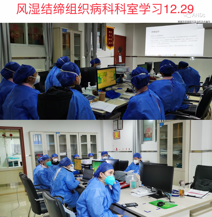 自疫情防控的工作重心从防控感染转到医疗救治以来,九江市第一人民医院开发区分院积极担负起重任,为新冠感染患者尤其是有风湿免疫疾病基础的患者提供专门的就医区域及救治保障。2022年12月26日起,风湿结缔组织病科作为专门病区,用于收治新冠感染患者,截至2023年1月5日,共收治新冠感染患者、病毒性肺炎病患近100人,其中有风湿免疫疾病基础的占到80%,风湿免疫疾病出现间质性肺病、肺纤维化者合并病毒性肺炎的病患相对更重,目前病区已转ICU1人,3人使用高流量呼吸湿化治疗仪、无创辅助呼吸通气,已好转出院18余人。